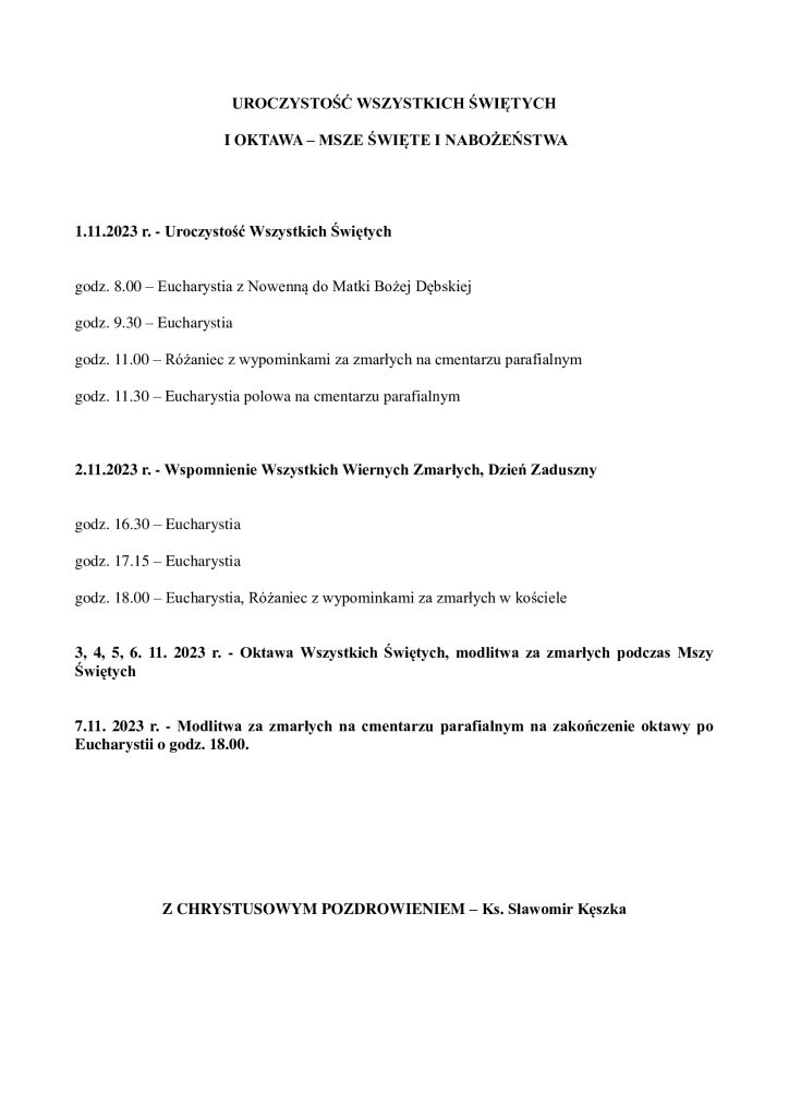 15.45 Zborów – Msza Św. (nabożeństwo wypominkowe w kościele)
