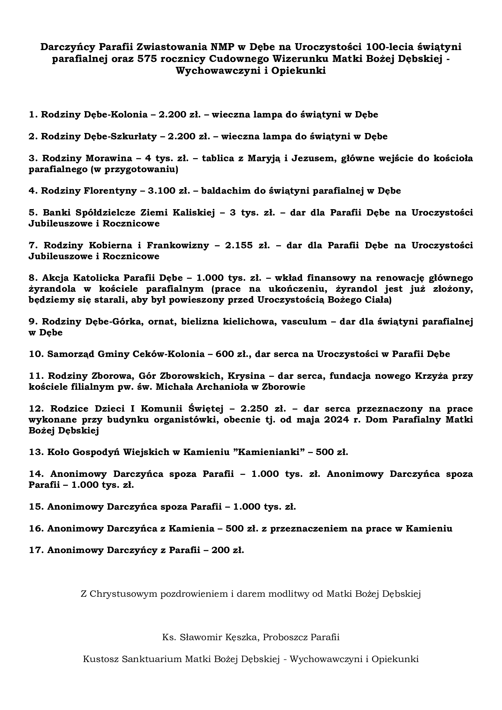 i Kustosz Diecezjalnego Sanktuarium Matki Bożej Dębskiej
