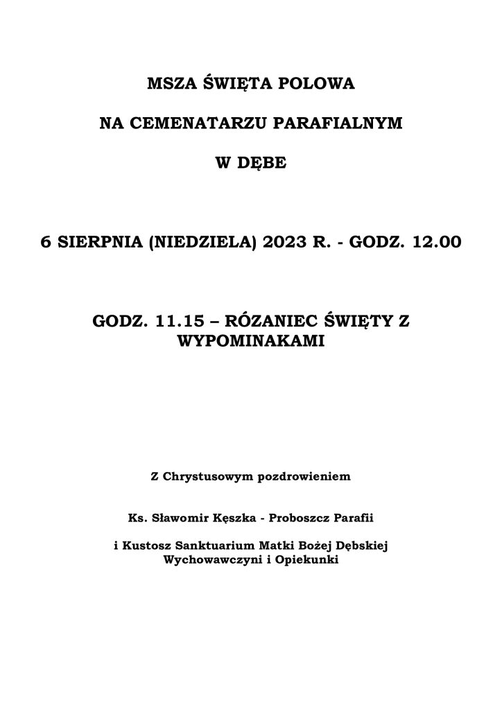 Dziękuję wszystkim Czcicielom Matki Bożej Dębskiej – Wychowawczyni i Opiekunki oraz Darczyńcom z Parafii oraz spoza niej za dar modlitwy i wdowi ewangelijny grosz na prace zrealizowane i w realizacji. Wszystkich Dobrodziejów polecam w środowej Eucharystii i Nowennie do Pani Dębskiej.
