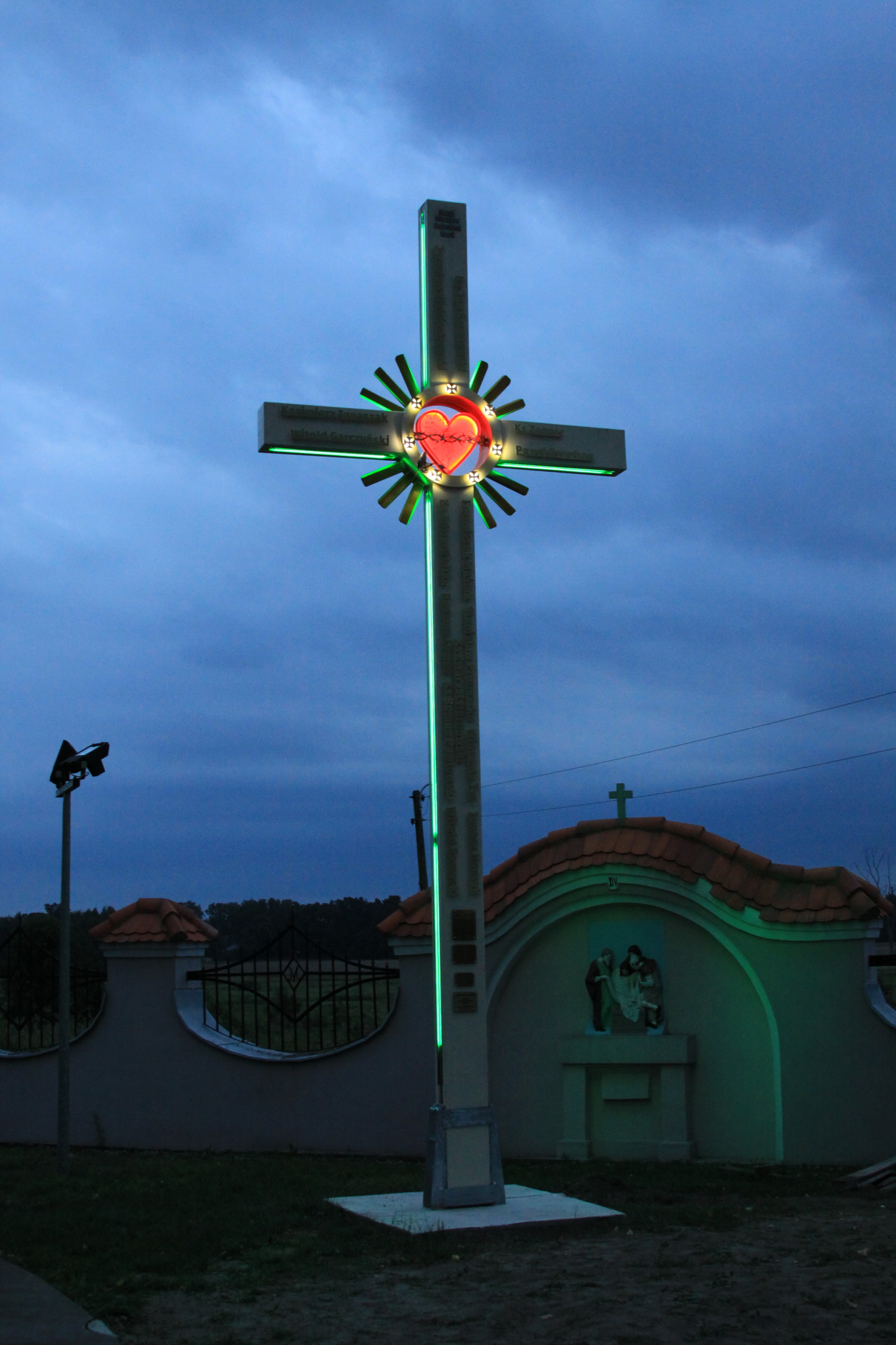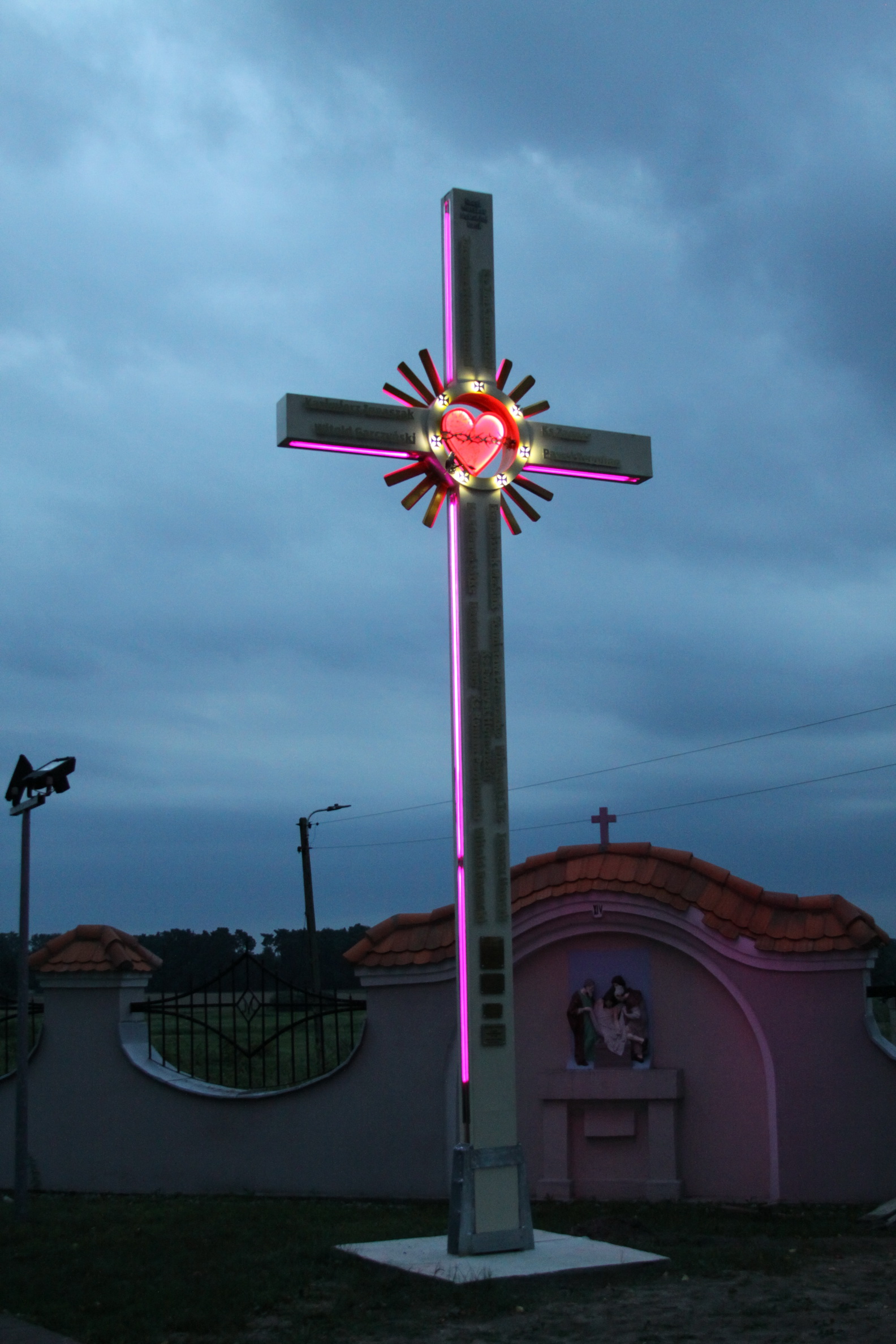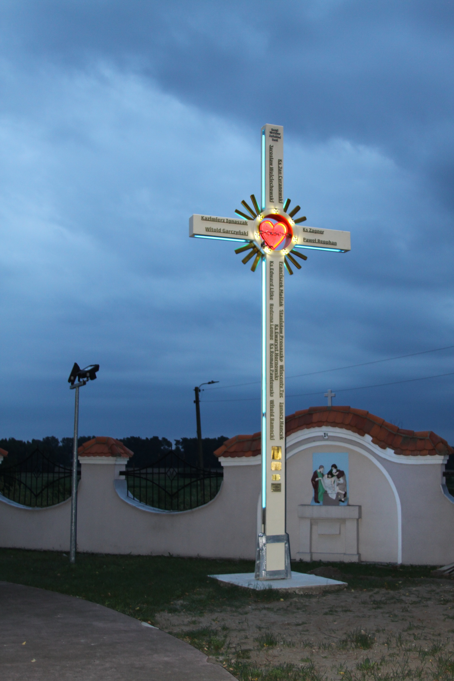 13. Montaż Krzyża Maryjnego Dębskiej Pani, jako wotum dziękczynnego za Parafię, kościoły na stulecie kościoła parafialnego.