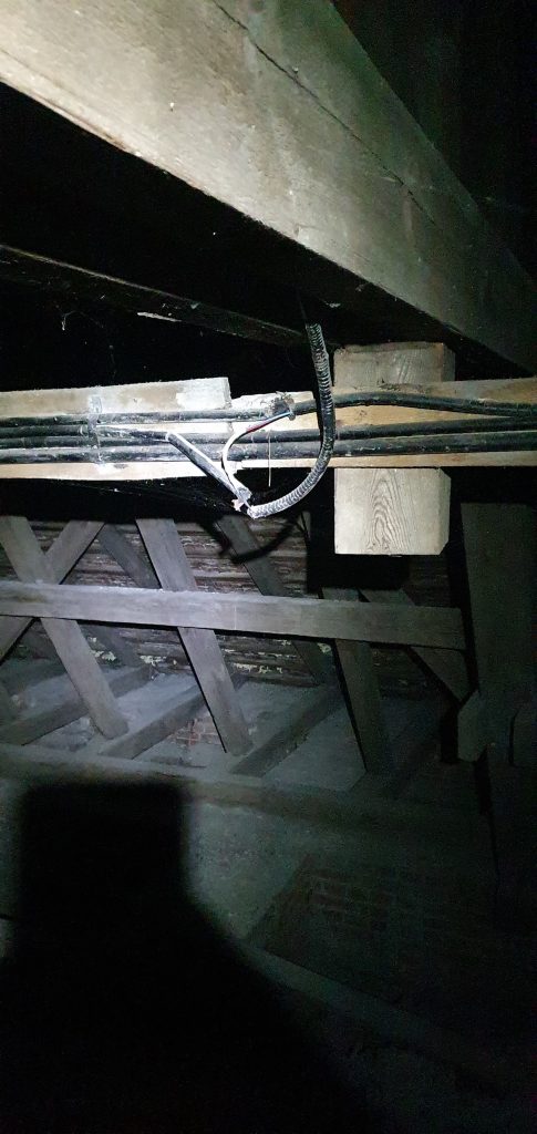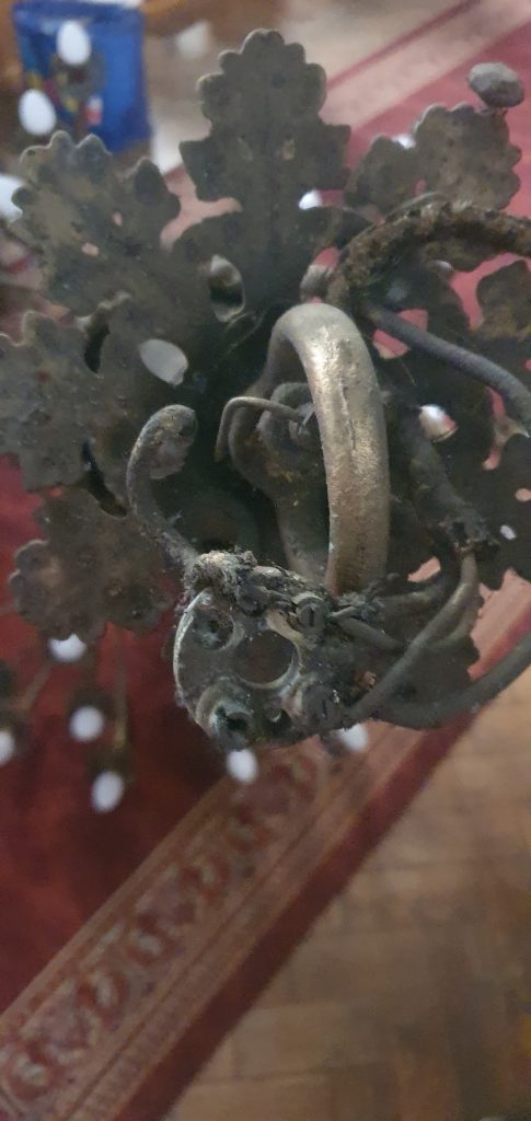 Poniżej przedstawiamy galerię zdjęć dotyczącą renowacji żyrandoli w kościele. Mocowanie największego żyrandola pozostawiamy BEZ KOMENTARZA!!!. Będzie to długotrwały proces z uwagi na brak konserwacji i przeglądów od co najmniej kilkudziesięciu lat… Dodatkowo natrafiliśmy na „dziwną skrzynkę” w której natknęliśmy się na „fachowe” podłączenie elektryczne… (Oczywiście będzie to zdemontowane)